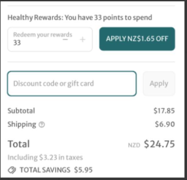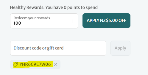 - Once you click and apply these to your order a Healthy Rewards code will automatically apply to your order.