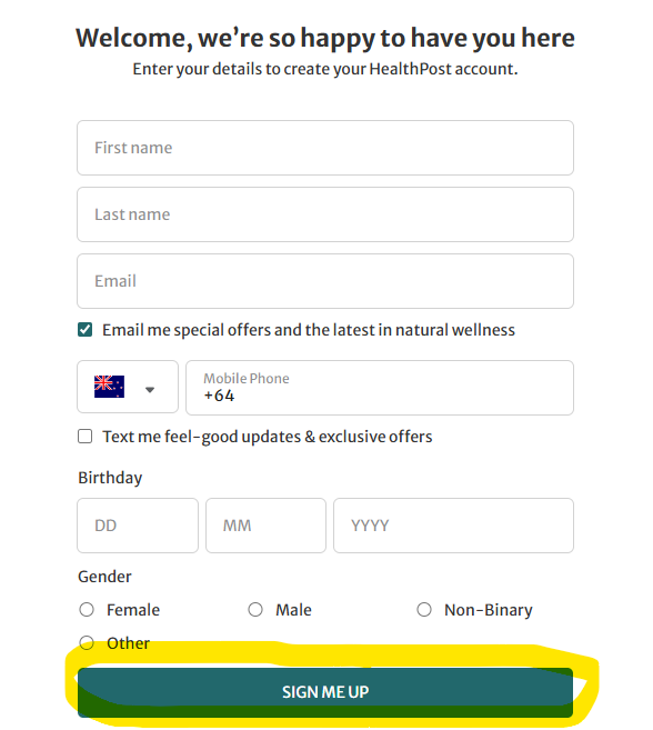 - Once details are completed click "SIGN ME UP"